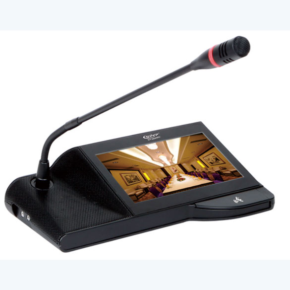 ■所有發言設備都可通過系統設置菜單:調節本機的音量、LCD亮度。 ■麥克風具有發言開關可控制發言狀態。使用FPGA作為核心CPU。 ■具有強制切斷列席麥克風發言的優先功能,具有攝像機自動跟蹤功能。 ■臺面可移動式、可拔插咪管。 限制發言數量可選。 ■單元由系統主機供電。輸入電壓為DC24V,屬于安全范圍。 ■麥克風網頭具有環形紅色光環,可顯示麥克風發言狀態。 ■單元具有8P-DIN插座用于系統連接。 ■內置高保真揚聲器及外接耳機插孔。 ■可繞式電容麥克風,并配可更換式防風罩。 ■采用全新數控化設計。 ■可以發言與聆聽。 ■話筒桿具有加長型可供選擇。 ■麥克風具有發言開可控制發言狀態。■頻率響應: 80Hz~16kHz ■ 靈敏度: -44dB±2dB ■ 參考講話距離: 15cm~50cm ■咪桿長度: 390mm ■ 顯示屏:7” TFT 16:9 ■ 分辨率:800*480 ■色 彩:262K