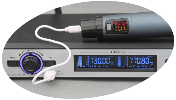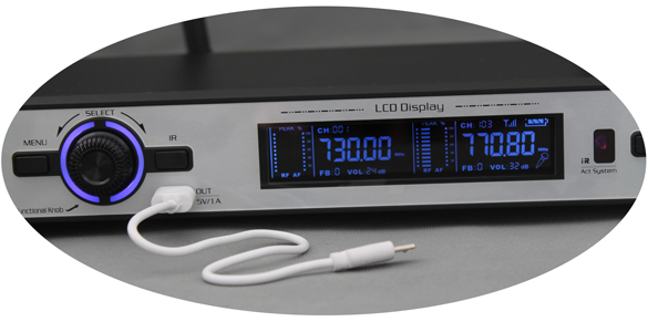 ●本機(jī)使用635.0~699.7MHZ頻率,雙通道具有80M超寬帶寬,每通道間隔400K,與傳統(tǒng)麥克風(fēng)使用50M帶寬250K通道間隔相比,具有更好的搞干擾能力!傳統(tǒng)250K通道間隔的麥克風(fēng),六臺疊機(jī)同時 使用時,就或多或少的相互干擾,產(chǎn)生竄頻竄音雜音的現(xiàn)象,嚴(yán)重影響使用!本機(jī)可以20套疊機(jī)同時使用,不會竄頻竄音。 ●本機(jī)使用電子音量調(diào)節(jié),音量大小可通過液晶顯示屏數(shù)字顯示,與傳統(tǒng)的旋鈕調(diào)節(jié)音量麥克風(fēng)相比,具有調(diào)節(jié)更精確、一致性更好。用旋鈕調(diào)節(jié)音量可能會使用左右麥克風(fēng)音量大小不致,一臺與另 一臺麥克風(fēng)之間音量大小不致等。 ●本機(jī)具有按鍵鎖定功能,當(dāng)設(shè)置好頻率和音量等參數(shù)后,可以一鍵鎖定按鍵(也可一鍵解鎖),有效防止在使用過程中,誤觸按鍵,造成頻率更換使麥克風(fēng)沒聲音的情況。 ●本機(jī)具有高音衰減和提升功能,當(dāng)使用者認(rèn)為麥克風(fēng)高音太多時,可以衰減高音;反之,當(dāng)使用者認(rèn)為高音不夠明亮?xí)r,可以提升高音。該功能可以讓本機(jī)適應(yīng)性更好,可以更好的適應(yīng)不同的音響 設(shè)備和使用者的愛好。 ●本機(jī)具有六段調(diào)節(jié)移頻防嘯叫功能,可以有效防止嘯叫,提升音量。 ●本機(jī)具有掃描干凈頻率功能。在無線信號太多的環(huán)境中(如手機(jī)多、許多麥克風(fēng)一起使用等),人工調(diào)節(jié)頻率很難找到?jīng)]有干擾的頻率來使用。使用該功能可以一鍵掃描找出當(dāng)前環(huán)境中,未被使用或干擾較少的頻率。讓麥克風(fēng)不被干擾,有效防止竄頻竄音雜音等情況地發(fā)生。
