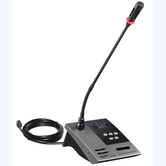1、智能數字化設計控制電路,功耗低。 2、外置三鍵表決、電子簽到功能。 3、獨特的40CM長管,360度全方位旋轉設計,可拆卸;高保真單指向性電容咪芯,拾音距離遠、聲音還原度好、清晰度高、噪音小。 4、主席單元有優先發言權,可隨時關閉其他列席單元。 5、128X64LCD液晶,顯示單元身份、發言模式、發言狀態、發言時間。 6、優良抗手機干擾能力。 7、無噪音輕觸開關設計,操作靈活; 8、獨有音箱網外觀設計內置揚聲器,可用于會議擴音及播放會議背景音樂。 9、輕觸開關音量控制設計,可調節音量大小。 10、左側設計有3.5音頻輸出,收聽其他列席會議發言內容。 11、會議單元支持熱插拔功能,自帶2.1米8P連接線;手拉手連接模式,安裝簡便,操作靈活。 類型: 電容式 指向性: 單一指向性 頻率響應: 30Hz-18KHz 靈敏度: -43±2db@1KHz 輸入電壓: DC 9V(主機供電) 最小輸入阻抗: 1千歐 新噪比: 68 dB 輸入導線: 2.0M 8P屏蔽線 附件: 防風海綿、2.0M 8P T3M屏蔽線 SY-870B代表單元(下圖) SY-870B代表單元功能參數: 1、智能數字化設計控制電路,功耗低。 2、外置三鍵表決、電子簽到功能。 3、獨特的40CM長管,360度全方位旋轉設計,可拆卸;高保真單指向性電容咪芯,拾音距離遠、聲音還原度好、清晰度高、噪音小。 4、主席單元有優先發言權,可隨時關閉其他列席單元。 5、128X64LCD液晶,顯示單元身份、發言模式、發言狀態、發言時間。 6、優良抗手機干擾能力。 7、無噪音輕觸開關設計,操作靈活; 8、獨有音箱網外觀設計內置揚聲器,可用于會議擴音及播放會議背景音樂。 9、輕觸開關音量控制設計,可調節音量大小。 10、左側設計有3.5音頻輸出,收聽其他列席會議發言內容。 11、會議單元支持熱插拔功能,自帶2.1米8P連接線;手拉手連接模式,安裝簡便,操作靈活。 類型: 電容式 指向性: 單一指向性 頻率響應: 30Hz-18KHz 靈敏度: -43±2db@1KHz 輸入電壓: DC 9V(主機供電) 最小輸入阻抗: 1千歐 新噪比: 68 dB 輸入導線: 2.0M 8P屏蔽線 附件: 防風海綿、2.0M 8P T3M屏蔽線