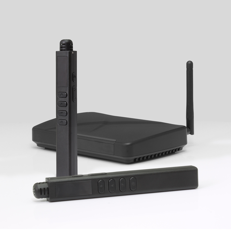 功能參數: ■工作頻段:2.4G全球通用的免許可證 ISM 綠色頻段; ■傳輸距離遠:可在大于30 米開闊地帶范圍內穩定傳輸音頻數據; ■同一話筒可在任意教室使用,且互不干擾;真正做到一師一麥,干凈衛生環保; ■支持內置麥克風及外置麥克風。使用內置麥克風,可手持使用,也可插在上衣衣領、口袋,或用掛繩掛于胸前使用;在同時使用激光教鞭、遙控電腦PPT等功能時建議使用外置3.5mm插頭的頭戴麥克風或領夾式麥克風插入外接麥克風插孔,可獲得最佳的拾音效果; ■支持激光筆教鞭; ■支持PPT翻頁和一鍵黑屏/恢復功能,可配合投影儀或者電腦展示講解使用。PPT 翻頁模塊支持熱插拔,無需裝驅動軟件,支持不開主機使用PPT 翻頁功能; ■支持3.5mm音頻輸入和麥克風輸入; ■2.4G與紅外兩種對頻方式:開機自動搜索干擾少的信道對頻,3秒 內完成自動配對,保證產品不串頻、抗干擾性強以及傳輸的穩定性; 紅外對頻,確保同一空間設備準確對頻; ■采用32kHz 采樣率,保證人聲音質質量,傳輸前后經過獨有技術 處理,確保接收到的信號保持高保真效果; ■采用內置駐極體拾音器,設計有拾音器腔體,能有效抑制嘯叫, 提高拾音距離,腔體內置聲學海綿墊,可改善爆破音; ■支持一鍵靜音功能; ■支持音量調節:可調節麥克風音量的大小,并具有關機記憶功能; ■全新噪聲消除電路設計,可有效降低開關機噪聲; ■液晶顯示,顯示信號強度,對頻方式,電量(充電顯示),工作頻道,音量,PPT功能等; ■內置可充式高性能3.7V聚合物鋰電池。電池容量:800mA,帶保 護電路,安全可靠,MICRO USB接口充電,2小時充足電可持續續 航時間≥12h; ■低能耗設計,無信號時2分種內自動關機,節能環保; ■筆形麥身設計,抓握舒適,符合人體工程學,按鍵分區設計,操作 簡潔,金屬電鍍腔體,更顯產品質感。外觀時尚新穎靚麗,整個話 筒(含內置麥)重量小于40克,重量輕,持握方便; ■五種EQ效果:有5個等級可選,等級1低音最多,等級5高音最多,等級3為平衡,為默認等級; ■對頻距離自由設置有1-7階可選(第1階為最小功率;第7階為最大功率,); ■發射器在檢測到與接收斷開連接后10分鐘自動關機; ■發射器在沒有音頻輸入后60分鐘自動關機,防止忘記關機導致電池耗盡; ■內置限幅器,可以避免輸入信號過大造成的失真情況。