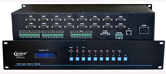 設計級別:高端場合。完全按照智能會議中控主機要求設計,非電教中控主機改裝,具有大量豐富的控制口,向國際知名品牌看齊,不集成信號切換系統(tǒng)(小矩陣),增強控制接口,以降低整個系統(tǒng)崩潰的風險; ■控制通訊:以太網(wǎng)(TCP/IP),10/100M自適應,TCP SERVER方式,也可定制為UDP方式。 ■處理器:嵌入式雙處理器。 采用2顆嵌入式高速中央處理器(CPU)并行運算,有別于傳統(tǒng)的中控系統(tǒng),可快速處理各種復雜的控制指令,提高響應用戶的速度; ■紅外口:8路。路獨立可編程的紅外發(fā)射接口,支持控制多臺相同或不同的紅外設備,支持控制DVD、電視機、空調、投影機等所有紅外遙控設備; ■紅外學習器:內置,支持超長碼識別。主機內置紅外學習器,自動識別紅外代碼類型,能輕松學習超長碼的空調遙控器,對音視頻設備這些32位普通遙控器,更不在話下。可把紅外數(shù)據(jù)保存到電腦成為紅外庫文件,供后續(xù)工程或后續(xù)維護升級使用,提高工作效率; ■指令存儲器:FLASH,大容量FLASH存儲器,可保存高達2048條控制指令,滿足任何場合的控制存儲要求,支持擴展; ■繼電器:8路弱電繼電器接口,用于窗簾、電動幕布等控制; ■RS232串口: 16路,可編程, RS-232 串口,和RS-485互不關聯(lián),可同時使用; ■RS485/422串口: 8 路,可編程,RS-485 串口,和RS-232互不關聯(lián),可同時使用;(即最多有24個串口) ■IO口:支持外部高電平觸發(fā)動作或輸出高電平; ■尺寸:480mm(長)x 250mm(深) x 85mm(高)或 480mm(長)x 180mm(深) x 80mm(高); ■重量:3.8kg; ■安裝:標準機柜,2U高度; ■平均故障間隔時間MTBF:38000小時。