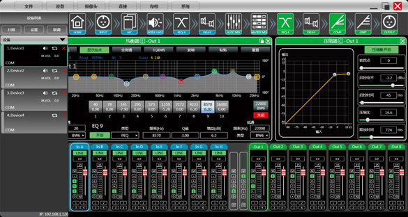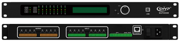 MAP0808M是一款8進8出的自動混音媒體矩陣,配備8路模擬輸入和8路模擬輸出,內置反饋抑制,自動混音,矩陣混音,均衡器,分配器,壓縮器等DSP功能,通過USB免驅連接電腦軟件控制,RS232,TCP/IP連接中控遠程控制,適合用在各種場合的擴音工程。