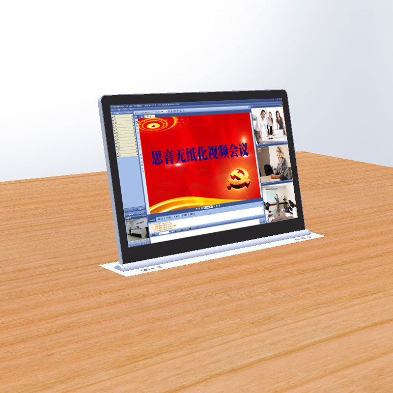 產(chǎn)品本身內(nèi)置LED顯示屏,超薄機身和鋁合金精拉絲氧化面板結(jié)構(gòu),齒合式直線導(dǎo)軌傳動方式,機械防夾手設(shè)計,一體化機身防護,外觀無螺絲,產(chǎn)品使用安全可靠,美觀大方。外置VGA、DVI、HDMI等多重信號接口和RS232/485控制接口,產(chǎn)品在啟動時,液晶顯示屏升降器從箱體內(nèi)部升出桌面并自動為顯示屏供電,產(chǎn)品設(shè)有智能仰角0-15°可調(diào)節(jié)角度功能,滿足各個人群的顯示屏仰角使用需要。當(dāng)產(chǎn)品使用完成需要關(guān)閉時,顯示屏自動返回升降隱藏于箱體內(nèi)部并自動斷開顯示屏電源,起到保護顯示屏并節(jié)約用電的作用。產(chǎn)品具有防盜、防塵、和保持桌面平整清潔,會議場所整齊有序等功能。本系列產(chǎn)品可按客戶要求定制。